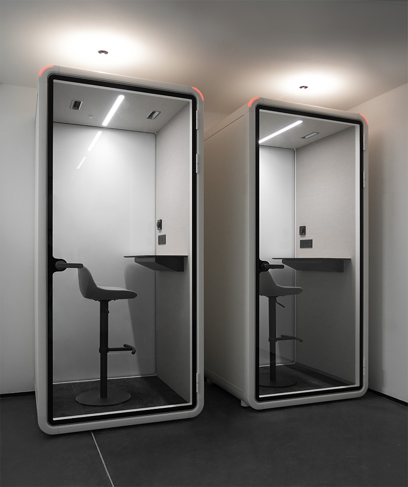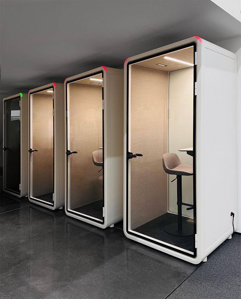 When the indicator light turns on and the glass door closes, the noise from nearly a thousand people working instantly fades away. In this double?layer open?plan office space, eight soundproof pods are scattered like islands, offering temporary havens for focused work.